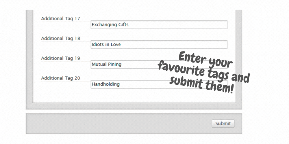 There are 20 fields you can fill out to nominate your favourite freeform tags.[What are Freeform tags?] đź’¬