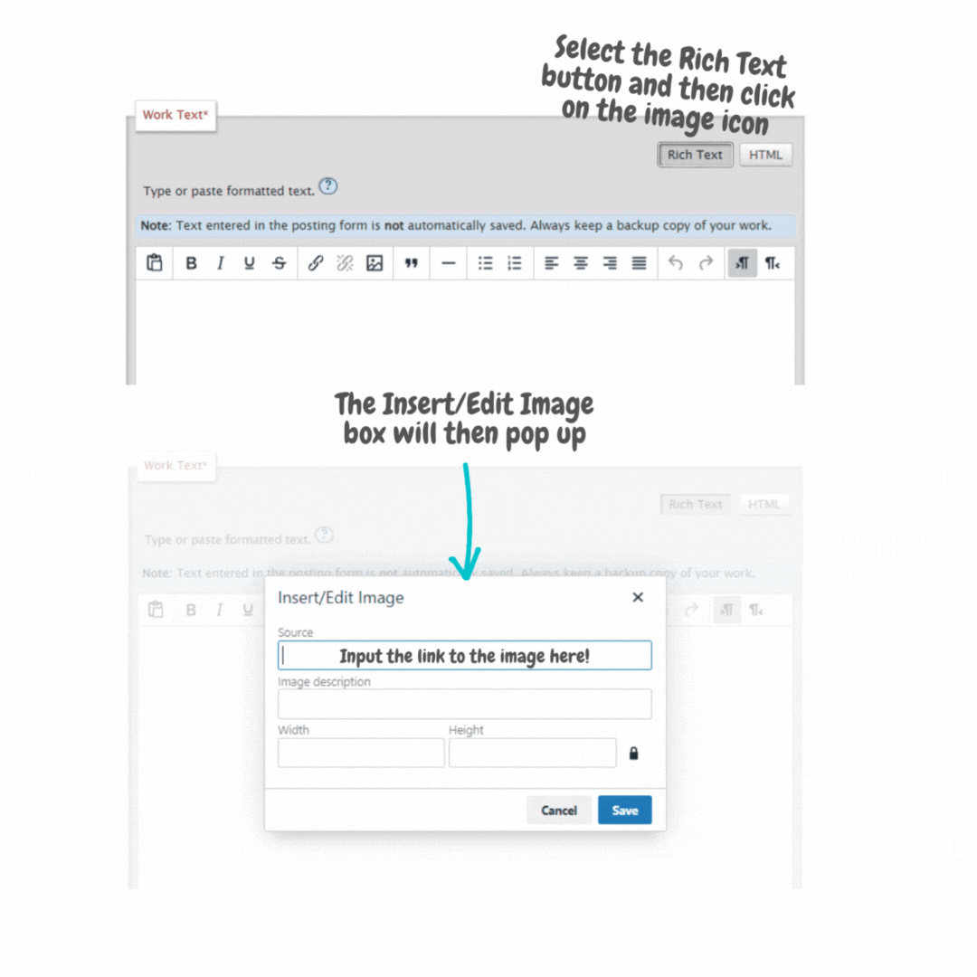 Once you've hit the Fulfill button, scroll down to the "Work Text" area and select the Rich Text button, and then click on the image button.